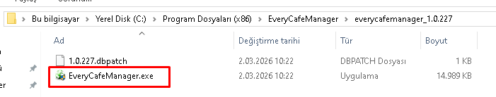 Bu klasörlerin içerisinde ilgili sürüme ait EveryCafeManager.exe dosyası bulunur.