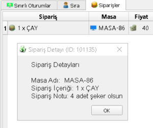 SİPARİŞ NOTLARI ARTIK EKRANDA GÖRÜNTÜLENİYOR