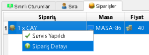 HERHANGİ BİR SİPARİŞ ÜZERİNDE SAĞ TIKLANDIĞINDA, SİPARİŞ DETAYI BUTONU ARACILIĞIYLA SİPARİŞİN TÜM İÇERİĞİ VE NOTLARI