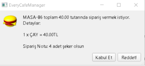 CLIENT TARAFINDAN GİRİLEN SİPARİŞ NOTLARI, ARTIK SADECE YAZICIYA DEĞİL, MANAGER EKRANINA DA YANSITILMAKTADIR.