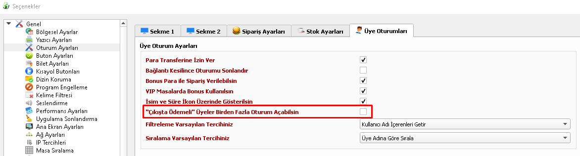 İşletme güvenliğini ve takibini artırmak adına, “Çıkışta Ödemeli” üyelerin aynı anda birden fazla oturum açma yetkisi isteğe bağlı hale getirildi.