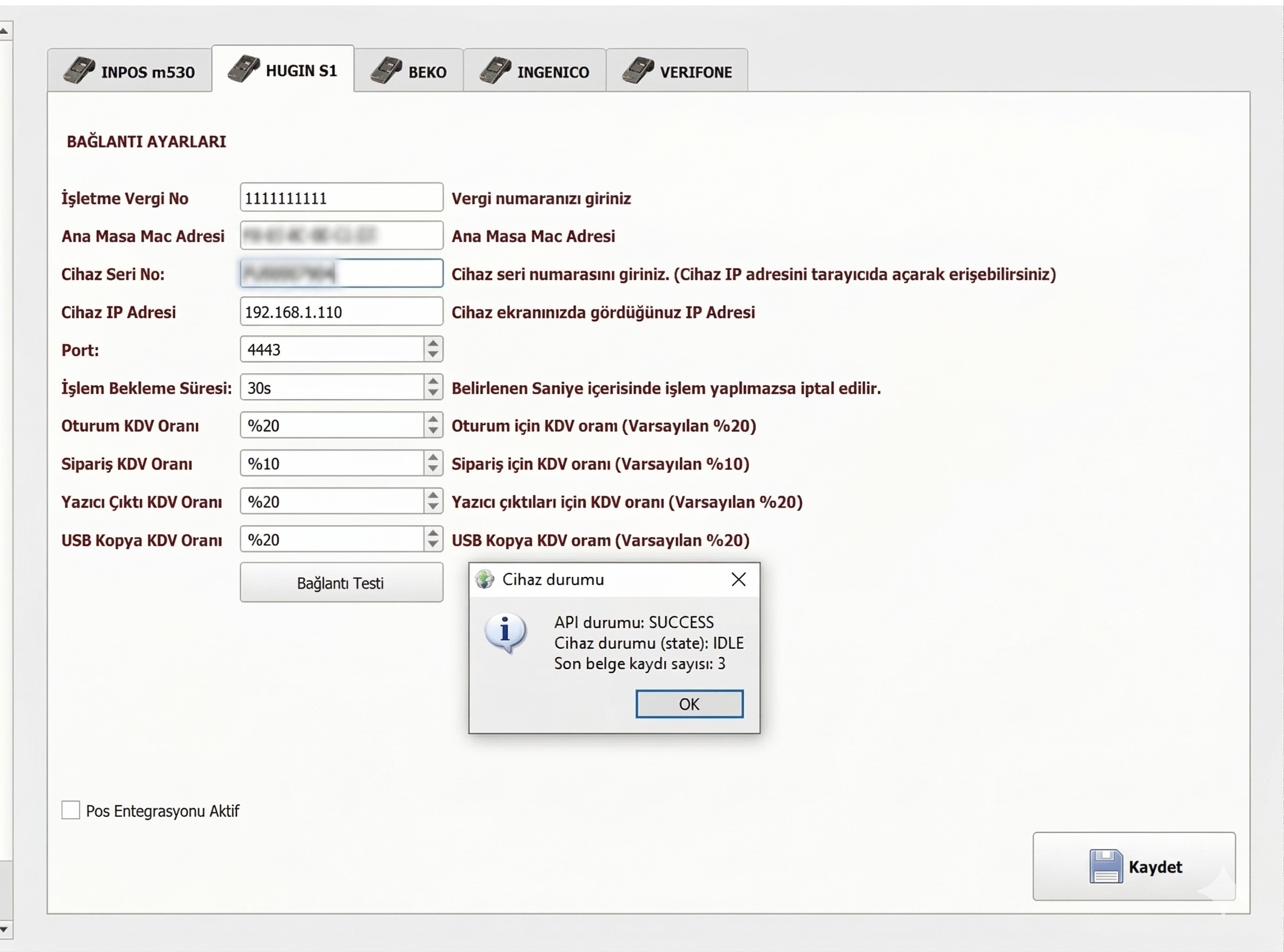 💳 Hugin S1 POS Entegrasyonu